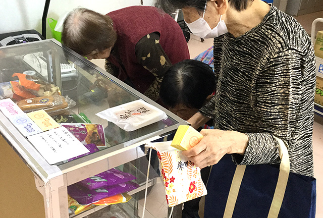 お菓子の売店は便利でいつも長蛇の列です。 -
