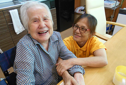 気の置けないスタッフや他の入居者様との井戸端会議が一番楽しいとおっしゃってくださいます -