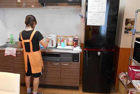 こちらのキッチンではコーヒーをいれたり、お茶を入れたり。もちろん入居様もご利用いただけます。 -