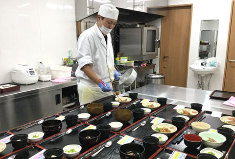 手作りのお食事を毎日提供しています。ひまわりシェフが思考を凝らしあたたかいお食事を提供しています。 -