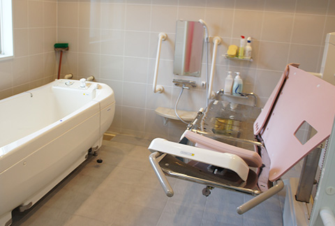 一般的なユニットバス以外にも、座ったままや寝たままでもゆったり入浴して頂ける様に、三種類のタイプのお風呂をご用意しております。 -